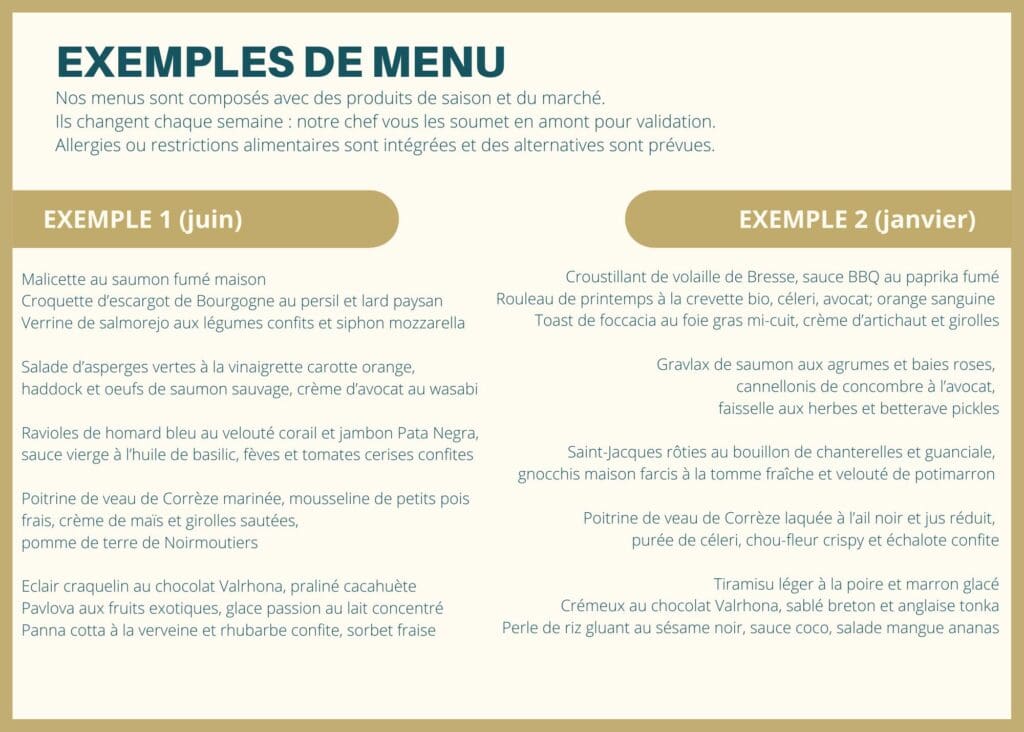 Nous échangeons en amont sur vos attentes, pour vous proposer un menu qui conviendra à tous :