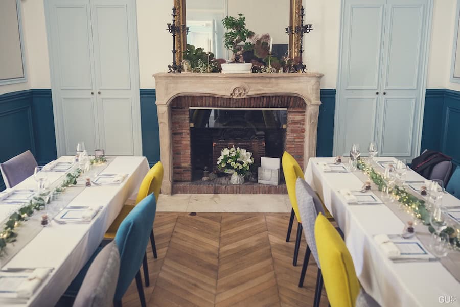 Que vous soyez 12, 25 ou 60, vous bénéficiez ainsi d’un espace privatisé, accueillant et chaleureux. Vous pouvez personnaliser la décoration de la salle si vous le souhaitez (fleurs de table, guirlandes, cadres photos…) et prononcer en toute liberté le discours que vous avez préparé !